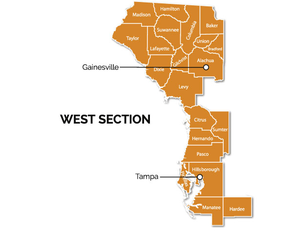 Prominent features of this region include the bountiful Big Bend and its associated seagrass beds, salt marshes and oyster reefs; the limestone bluffs, stately cypress trees and tannic waters of the renowned Suwannee, Withlacoochee and Hillsborough rivers; the sweeping grasslands of Paynes Prairie; the Green Swamp’s vast forests; and the abundant waters of Tampa Bay, Florida’s largest estuary. No matter how you choose to explore — by foot, bicycle, car or boat — you’ll find some of Florida’s best birding and wildlife encounters.