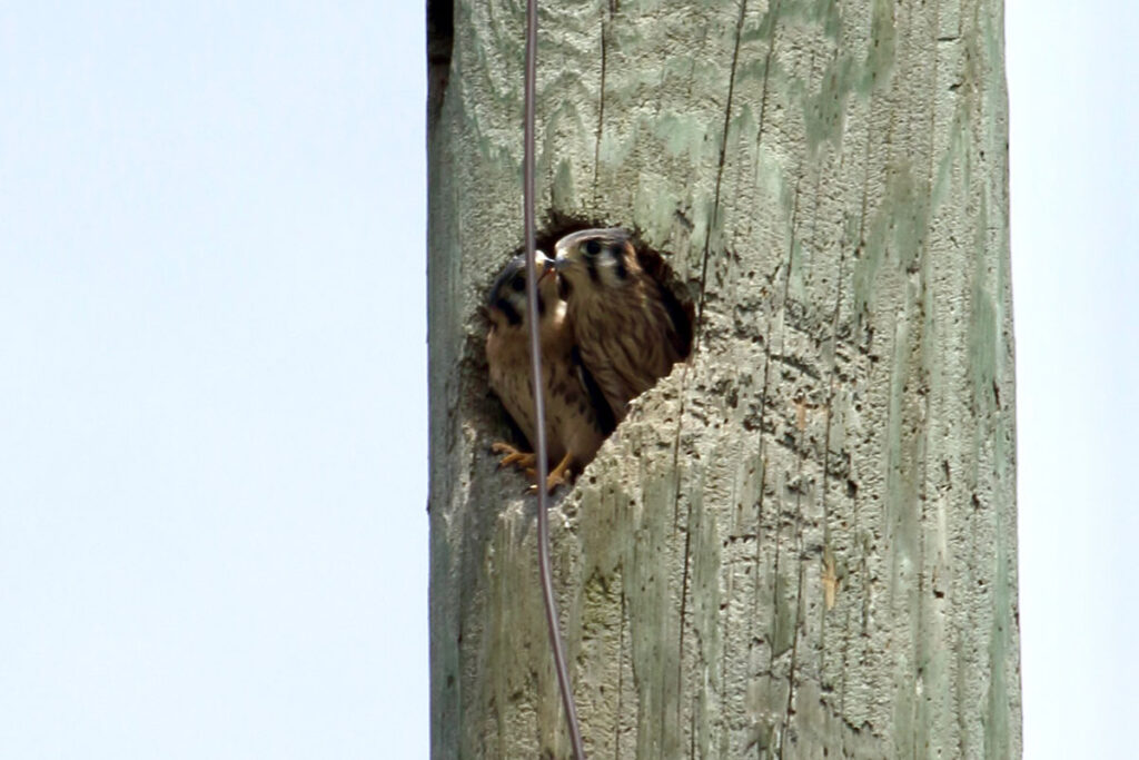 Recent observations show that kestrels have moved into urban areas. In Ocala, the species has been spotted perched on power lines and nesting in wooden utility poles. In 2018, a coordinated effort was initiated to learn more about these unexpected urbanites. In 2020, a partnership between FWC, the City of Ocala Parks and Recreation Department, and Marion Audubon led to the installation of 12 nest boxes in Ocala’s city parks. The boxes may be an important resource for the birds as many wooden utility poles are being replaced with metal or concrete poles.